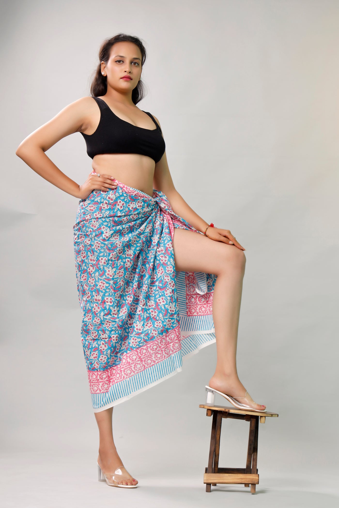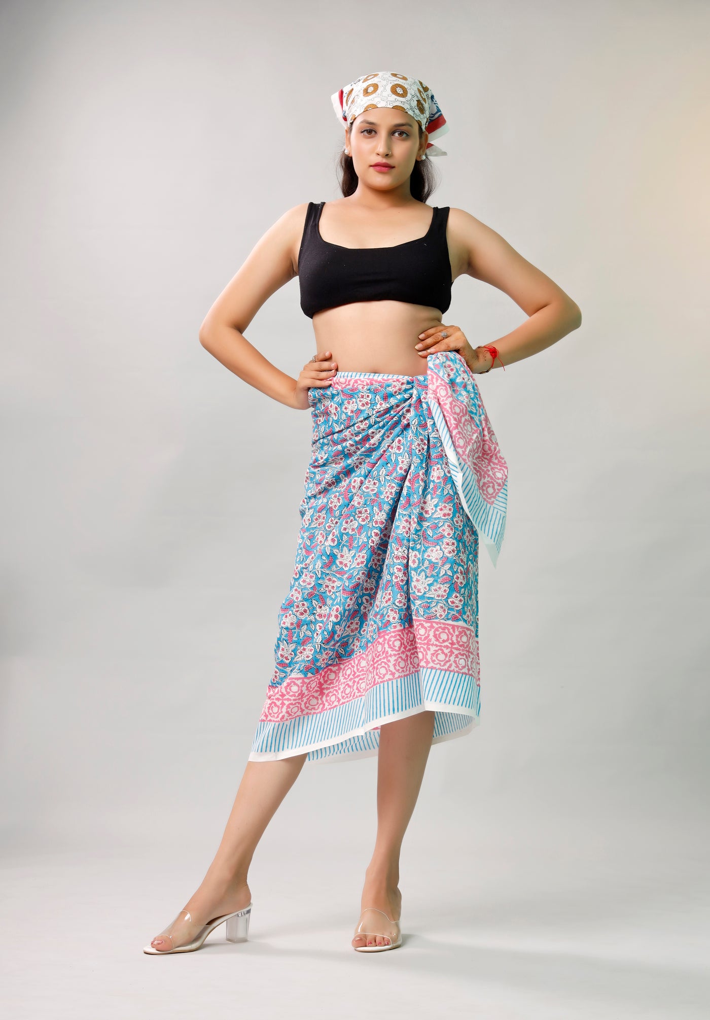 Lightweight Boho Cotton Sarong, Women’s Indian Print Pareo, Beach Cover Up Wrap Scarf for Poolside Style