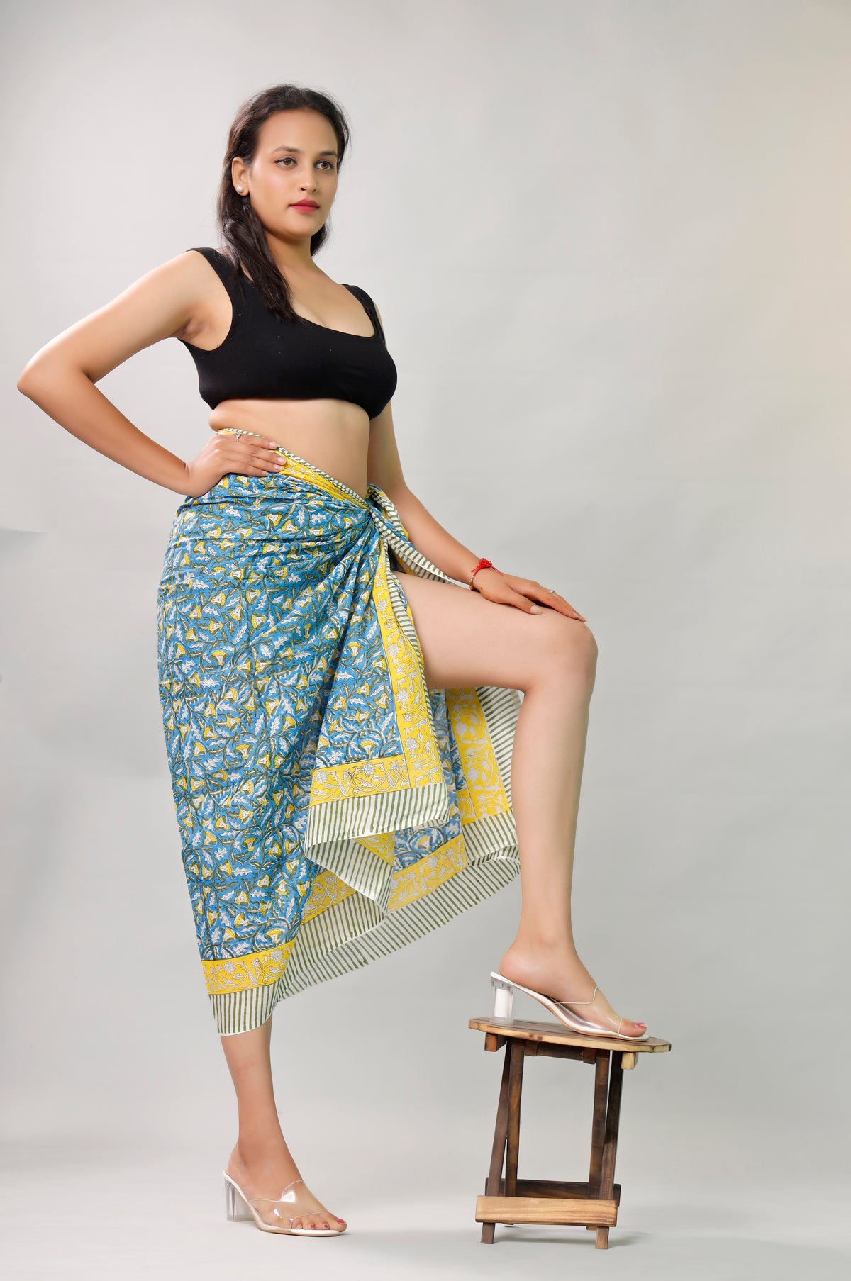 Beach Sarong Wrap Block Print, Lightweight Cotton Scarf, Summer Boho Travel Cover Up, Handcrafted Scarf Wrap, Travel Shawl For Summer